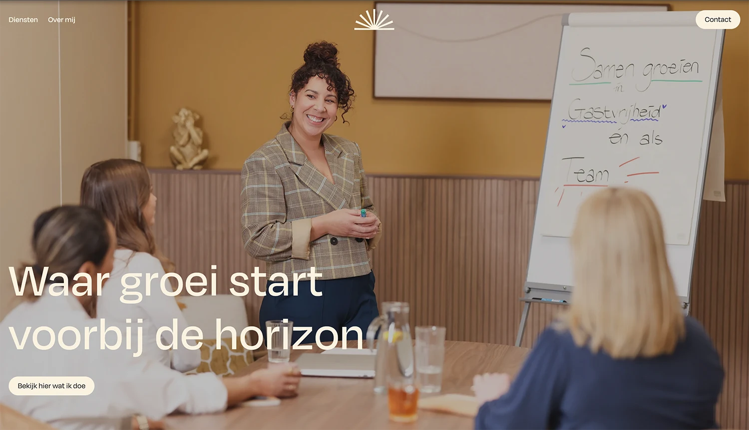 De grootste uitdaging lag in het vertalen van de unieke toon van Rise and Beyond: een combinatie van warmte, zachtheid én helderheid. De site moest rust en diepgang uitstralen, zonder zweverig te worden. Abstracte thema’s als systemisch werk en opstellingen vroegen om een heldere vertaling naar vorm en structuur, waarbij de kracht van het werk voelbaar blijft.